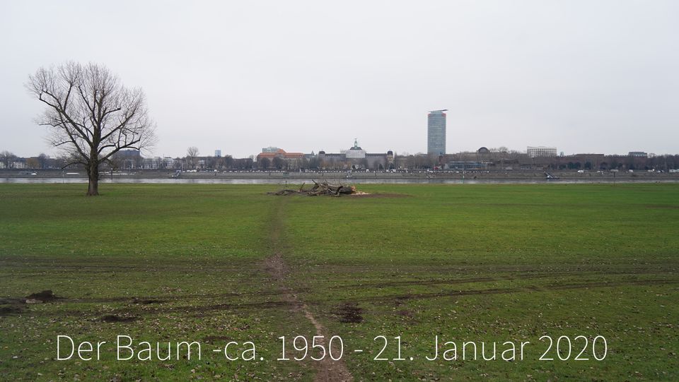 Am 22. Januar 2020 kriegte ich eine WhatsApp von meinem Freund Bernhard:“Traurige Nachricht: dein Baum ist gefallen…" . Ich war Gerade auch im Garten und bin sofort zum Deich. Es war passiert. Nach geschätzten 80 Jahren hat es unseren Baum auch erwischt. All Things must pass. Bye bye, Wim Wenders Baum, Bye bye Campino-Ast-Baum (“Schauen Sie sich meinen Baum an..“), Schattenspender an Hundstagen, Trotziger Kämpfer im Hochwasser, Hinterlaufheber für Mosi, Theo und Jack und so viele andere. Bye ,bye Ufer-Verdecker, Picknick - Schatten - Spender, Schafspelz - Kratzer und nicht zuletzt geliebtes Fotoobjekt für 762 Fotos der letzten 12 Jahre.